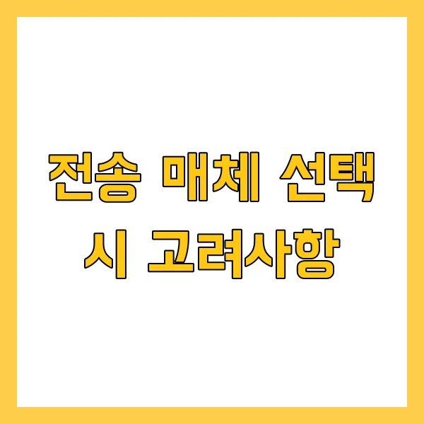 전송 매체를 선택할 때에는 여러 가지 요소를 신중하게 고려해야 합니다. 이는 단순히 속도나 가격 이 아닌, 사용 환경과 필요에 따라 적합한 매체를 선택하는 것이 중요합니다.