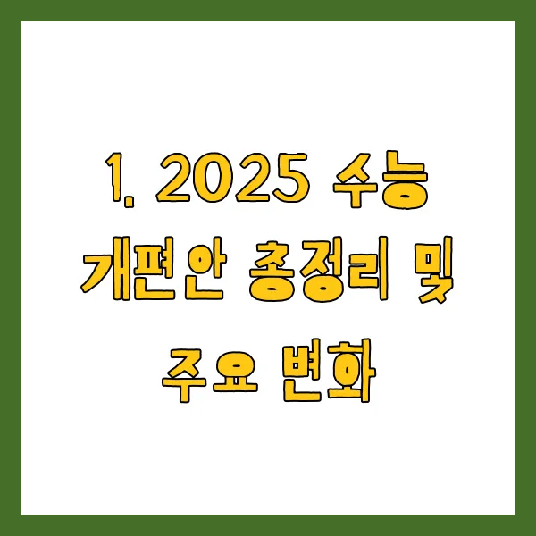 2025年 수능 개편안은 전반적인 시험 구조의 변화뿐만 아니라 평가 방식에서도 큰 전환점 을 맞이하게 됩니다. 특히, 이번 개편안은 교육부의 목소리에 따라 학생 중심의 학습 을 강조하고, 공교육의 역할을 강화하는 방향으로 설계되었습니다. 주요 내용으로는 과목의 개편, 시험의 난이도 조절, 그리고 평가 방법의 다변화를 포함하고 있습니다.