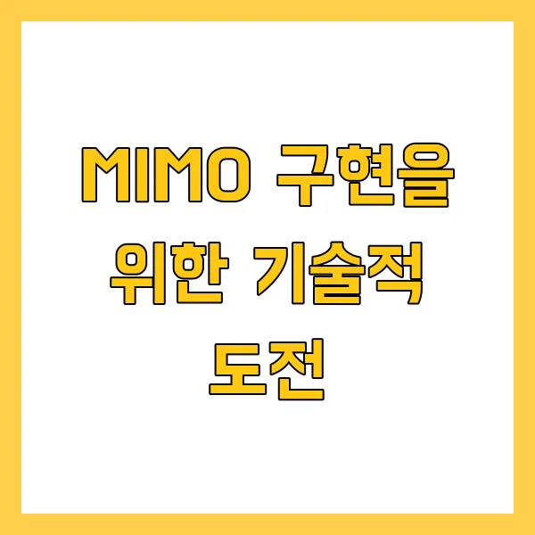 MIMO (Multiple Input Multiple Output) 기술은 강력한 무선 통신의 기반 으로 자리잡고 있지만, 이를 구현하기 위한 여러 기술적 도전들이 존재합니다. 해당 기술의 발전과 가능성을 최대한 이끌어내기 위해서는 이러한 도전 과제를 해결하는 것이 필수적입니다.